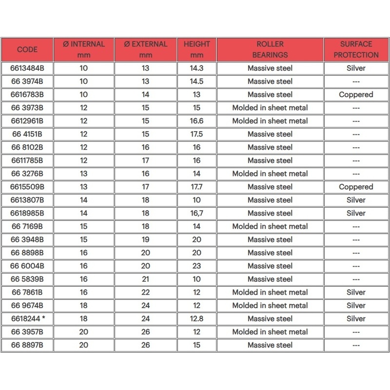 Les roulements à aiguilles Malossi sont des roulements indépendants prêts à être assemblés et fabriqués à partir d'acier à haute résistance, avec des logements pour l'insertion et la rotation axiale des rouleaux. Ces dispositifs sont conçus pour permettre un mouvement réciproque entre deux objets, en limitant la rotation de la cage et en logeant les éléments rotatifs avec des dimensions globales réduites, un poids négligeable et des frottements réduits. Ce sont des composants essentiels dans les moteurs à combustion interne qui, par définition, comportent plusieurs éléments rotatifs. Comme on peut le voir sur l'image, un ensemble de roulement à aiguilles est constitué d'un corps (cage) avec des logements dans lesquels les rouleaux sont positionnés, maintenus en place mais libres de tourner axialement. C'est, en effet, sur les rouleaux que repose la surface rotative externe et que la rotation entre les deux composants a lieu. Étant donné que les pièces sont soumises à une accélération et une décélération continues et, par conséquent, à des forces d'inertie notables, il est essentiel que la cage allie une légèreté considérable à une grande résistance et à un usinage de précision, et que les rouleaux soient parfaitement cylindriques et sélectionnés et couplés dans des classes de tailles avec des tolérances extrêmement serrées de l'ordre des microns. Il faut aussi que la cage elle-même soit construite avec des tolérances extrêmement serrées car elle doit maintenir les rouleaux séparés et les guider correctement. Il convient de noter que les logements dans lesquels les rouleaux sont logés doivent être parfaitement parallèles les uns aux autres pour éviter tout mouvement indésirable des éléments rotatifs et une poussée axiale néfaste consécutive, ce qui provoquerait un niveau élevé de surchauffe et réduirait considérablement la durée de vie du composant. Malossi a sélectionné uniquement les meilleurs roulements à aiguilles du marché pour garantir des performances optimales et une fiabilité inégalée. Seuls les composants équipés de roulements à aiguilles avec des tolérances extrêmement serrées et construits en acier traité thermiquement ont été sélectionnés, avec une résistance mécanique exceptionnelle et une dureté. Limités à une sélection d'applications, les roulements à rouleaux ont une protection de surface en aluminium qui garantit une plus grande résistance à l'usure et même une friction rotationnelle réduite. Pour les applications nécessitant une résistance encore plus grande, une protection de surface en cuivre a été utilisée, un matériau qui, en plus de réduire la friction et de protéger de l'usure, assure une meilleure dispersion de la chaleur, permettant à la cage de fonctionner correctement même lorsqu'elle est soumise à des charges élevées dans des atmosphères à haute température.